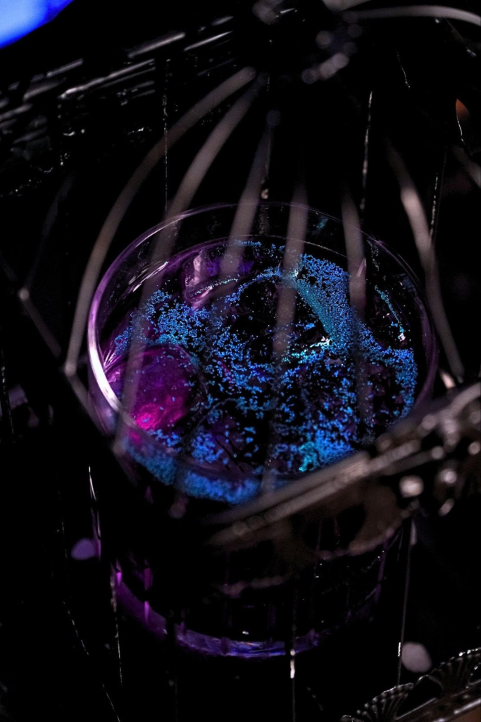 El Midori y el ron blanco crean un perfil de sabor dulce y afrutado, equilibrado con un toque de jugo de lima fresco para un acabado refrescante. La adición de Crème de Violette le aporta un efecto oscuro, misterioso y etéreo, convirtiéndolo en una “poción” visualmente impactante y memorable que captura el encanto y la magia de la historia.
