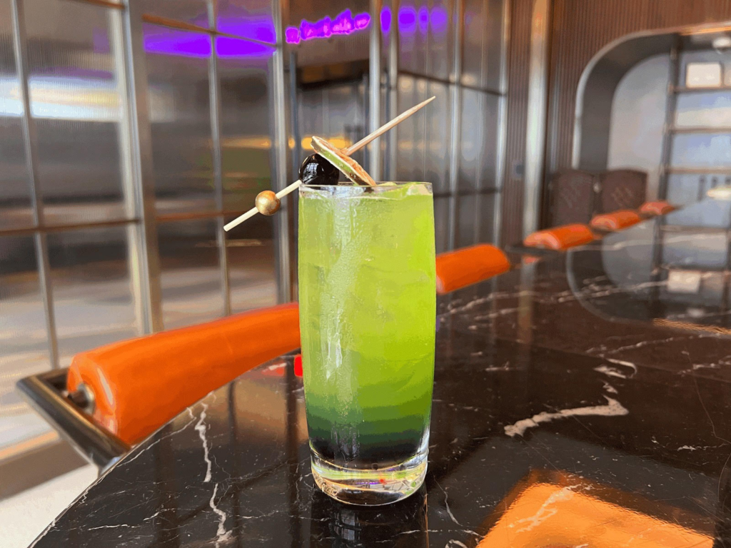 Inspirado en el icónico musical de Broadway Beetlejuice, el cóctel The Netherworld Swizzle, exclusivo del Tempo by Hilton New York Times Square, rinde homenaje a los temas del caos y lo sobrenatural. La bebida es una poción vibrante de color verde con una capa morado oscuro, que refleja el mundo fantasmal de la película.