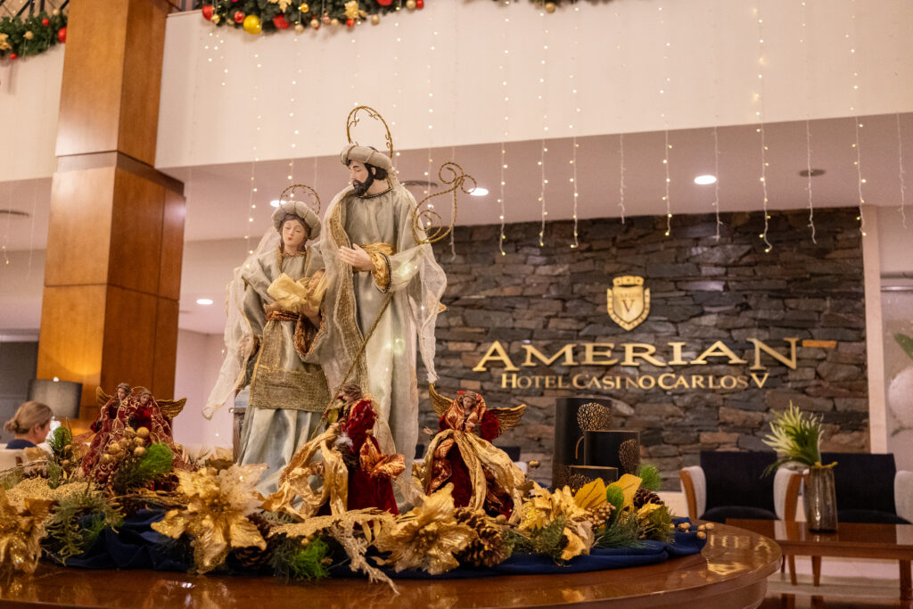 Amerian presenta una experiencia integral para celebrar las Fiestas con gastronomía completa, ambientación especial y entretenimiento. La noche comienza con una recepción bandejeada en el lobby, que incluye copa de bienvenida, vinos, bocados fríos y calientes, y luego se abre un Buffet Froid con platos clásicos navideños, ensaladas compuestas y vegetales frescos.